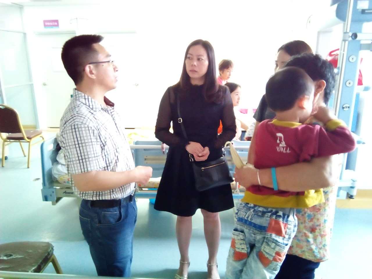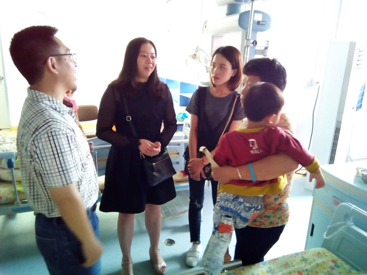 受黃董委托:公司楊總、董總、市場部小胡前往市第一婦幼保健院看望因手足口病住院的周詩展小朋友。送去了公司董事長黃總的慰問和全體穗康人的祝福!因小孩父母雙雙坐牢,導(dǎo)致就醫(yī)延誤,心肺功能受損。目前的問題:一是無直系親屬簽字無法腰穿檢查,二是因前期高燒,后續(xù)結(jié)果可能不太好。所以敬告朋友們,手足口病必須重視!10000元雖然不多,但也希望對于患者有所幫助。感謝黃總大愛!祝愿小盆友早日康復(fù)!